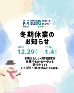 大切なお知らせ 冬期休業のお知らせ 誠に勝手ながら、12月29日(月)~2026年1月4日(日)は冬期休業をいただきます。 期間中のお問合せ・説明会等の申込みは、5日(月)より順次対応いたします。 どうぞよろしくお願いいたします。 カテゴリー お知らせ トピック 入試関係 最近の投稿 冬期休業のお知らせ \1月入試を実施します(19日・20日)/ まだ間に合う!2026年度生募集中 10月4日(土)合同進路相談会に参加します! 夏季休業のお知らせ(8/11~16) アーカイブ 月を選択 2025年12月 (2) 2025年11月 (1) 2025年10月 (1) 2025年8月 (1) 2025年7月 (1) 2025年6月 (1) 2025年4月 (2) 2025年2月 (1) 2024年12月 (1) 2024年11月 (1) 2024年9月 (2) 2024年8月 (1) 2024年7月 (2) 2024年6月 (1) 2024年5月 (1) 2024年4月 (2) 2023年12月 (2) 2023年11月 (3) 2023年10月 (3) 2023年9月 (3) 2023年8月 (4) 2023年7月 (2) 2023年6月 (3) 2023年5月 (1) 2023年4月 (4) 2022年12月 (3) 2022年11月 (3) 2022年9月 (3) 2022年8月 (3) 2022年7月 (3) 2022年6月 (2) 2022年4月 (1) 2022年2月 (1) 2022年1月 (3) 2021年12月 (4) 2021年11月 (2) 2021年10月 (3) 2021年9月 (4)